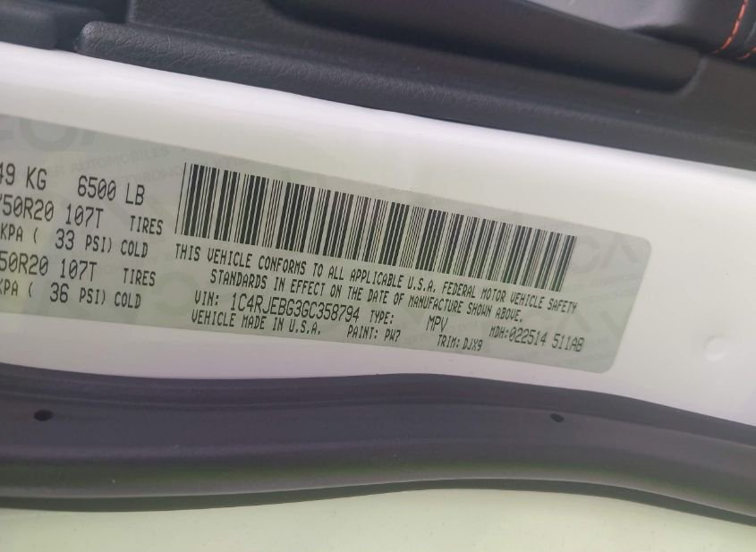 - VIN: 1C4RJEBG3GC358794