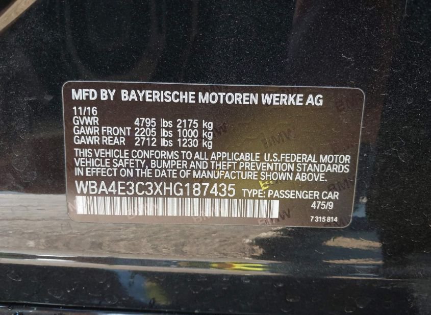 - VIN: WBA4E3C3XHG187435