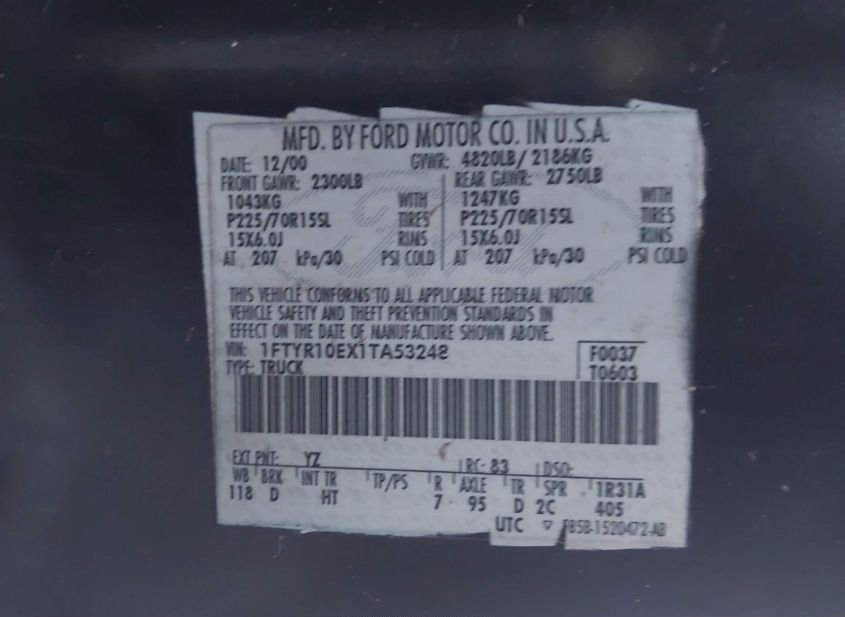 - VIN: 1FTYR10EX1TA53248
