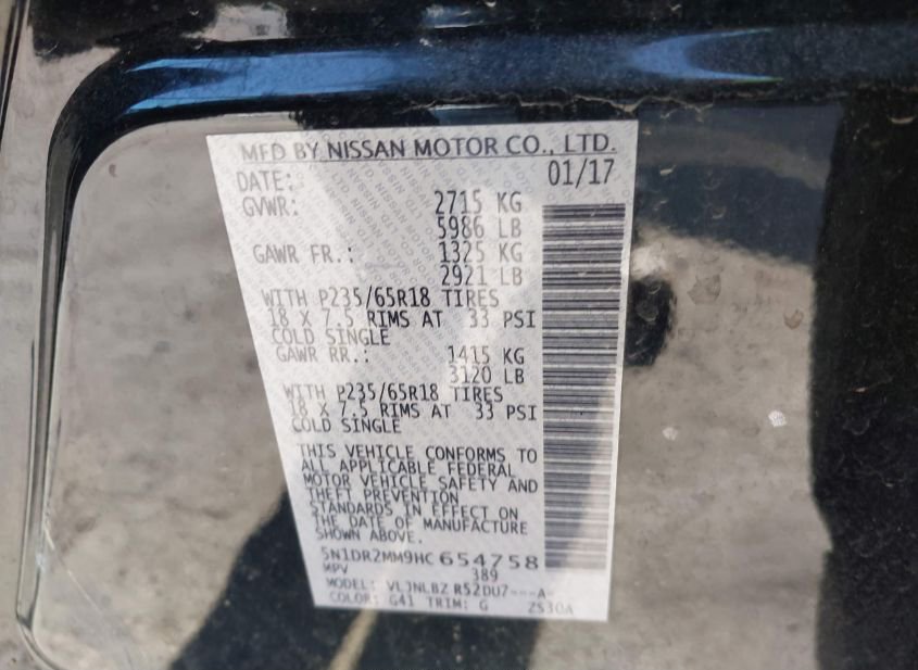 - Название лота: 2017 NISSAN PATHFINDER S