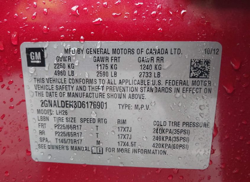 - VIN: 2GNALDEK3D6176901
