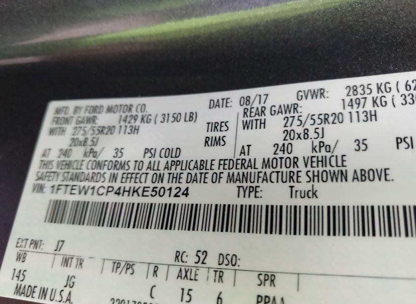 - VIN: 1FTEW1CP4HKE50124
