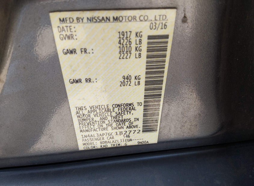 - VIN: 1N4AL3AP7GC182772