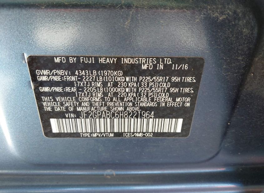 - VIN: JF2GPABC6H8221964