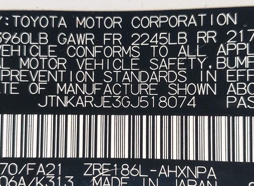 - VIN: JTNKARJE3GJ518074