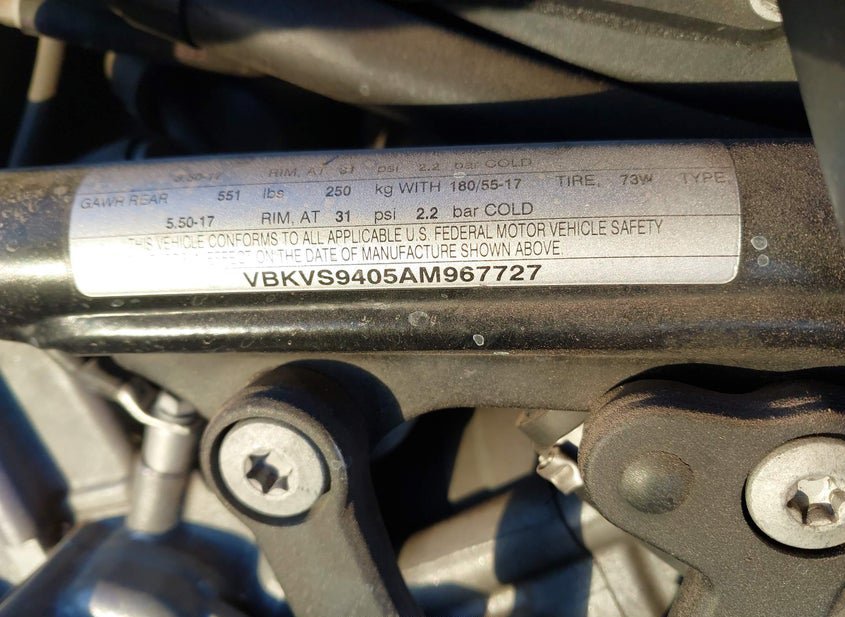 - VIN: VBKVS9405AM967727
