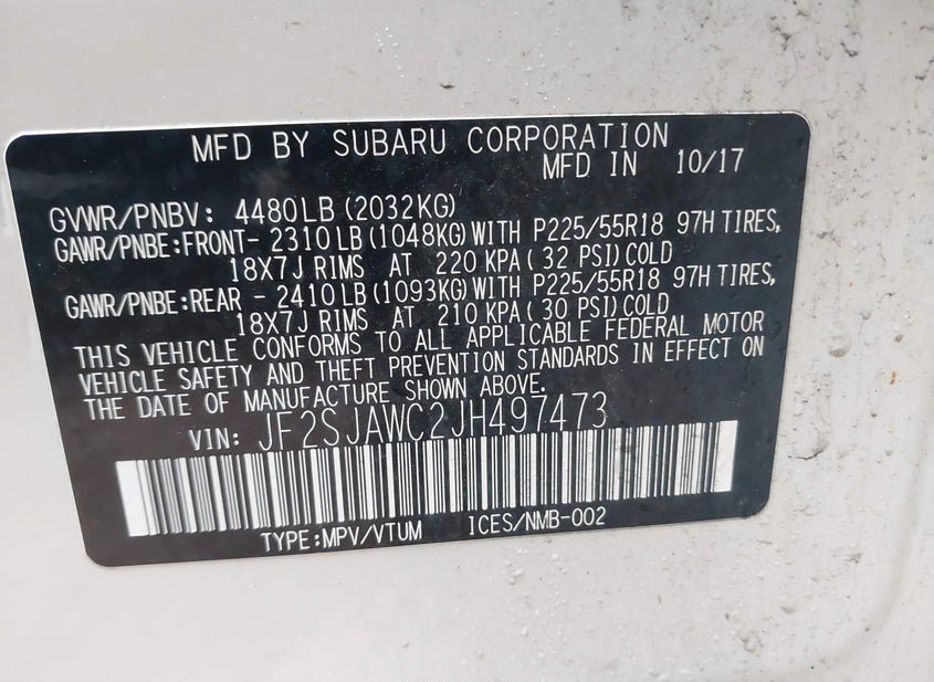- VIN: JF2SJAWC2JH497473