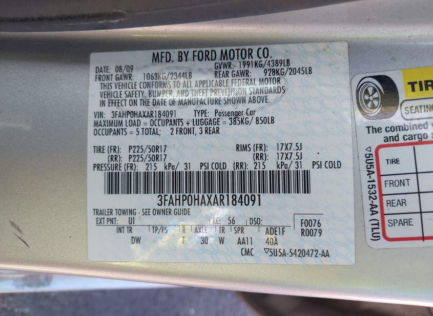 - VIN: 3FAHP0HAXAR184091