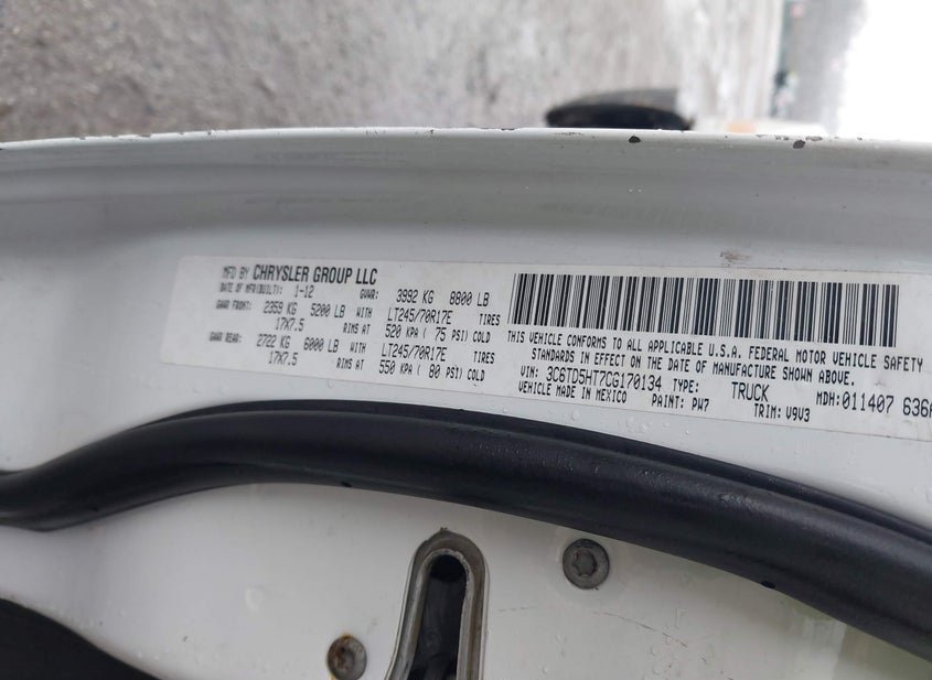 - VIN: 3C6TD5HT7CG170134