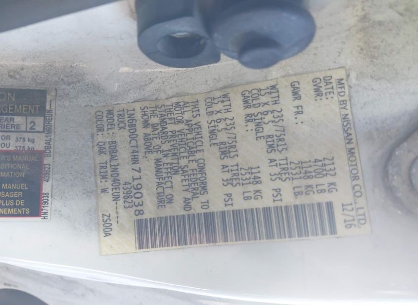 - VIN: 1N6BD0CT4HN719038