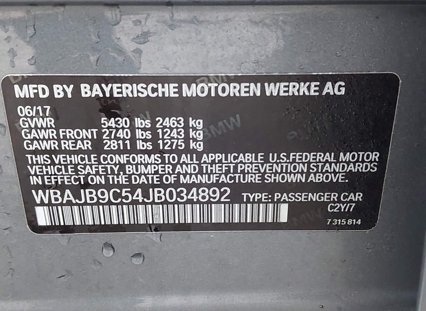 - VIN: WBAJB9C54JB034892
