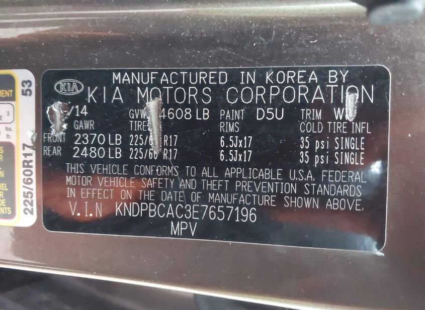 - VIN: KNDPBCAC3E7657196