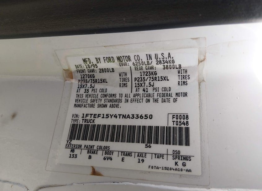 - VIN: 1FTEF15Y4TNA33650