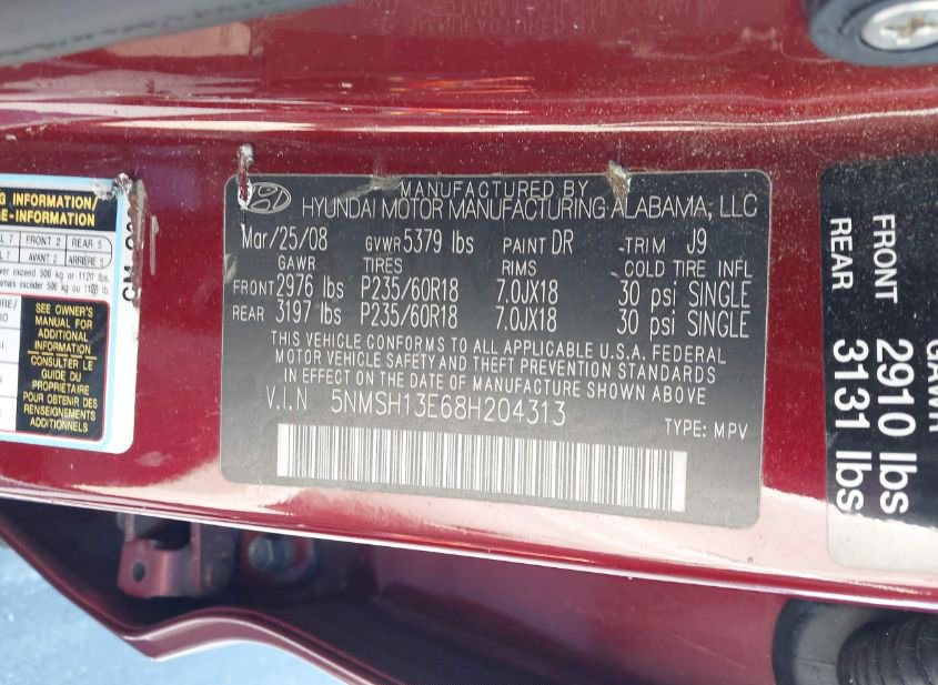 - VIN: 5NMSH13E68H204313