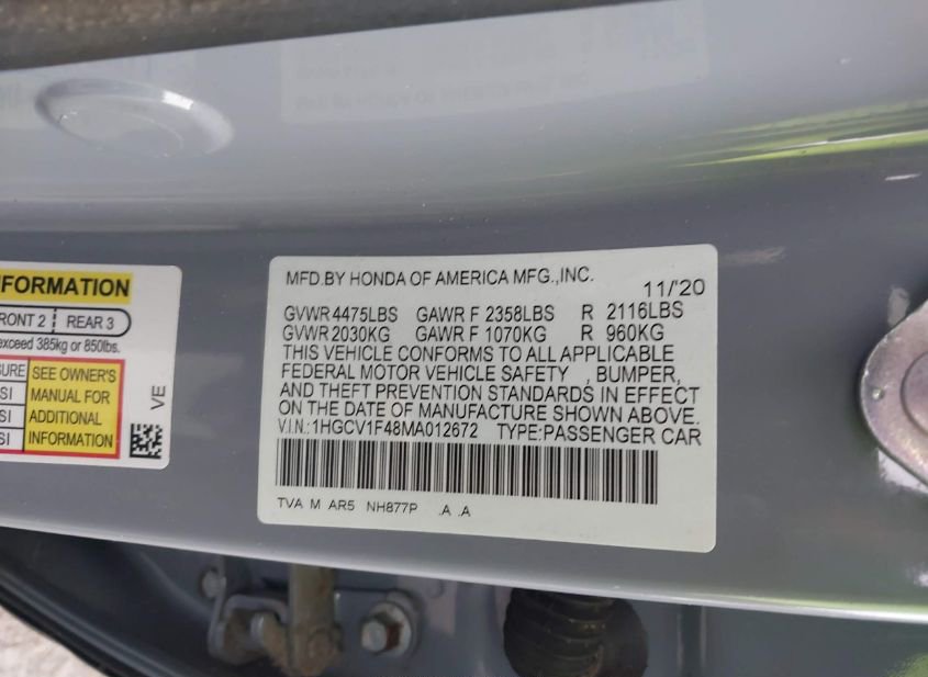 - VIN: 1HGCV1F48MA012672