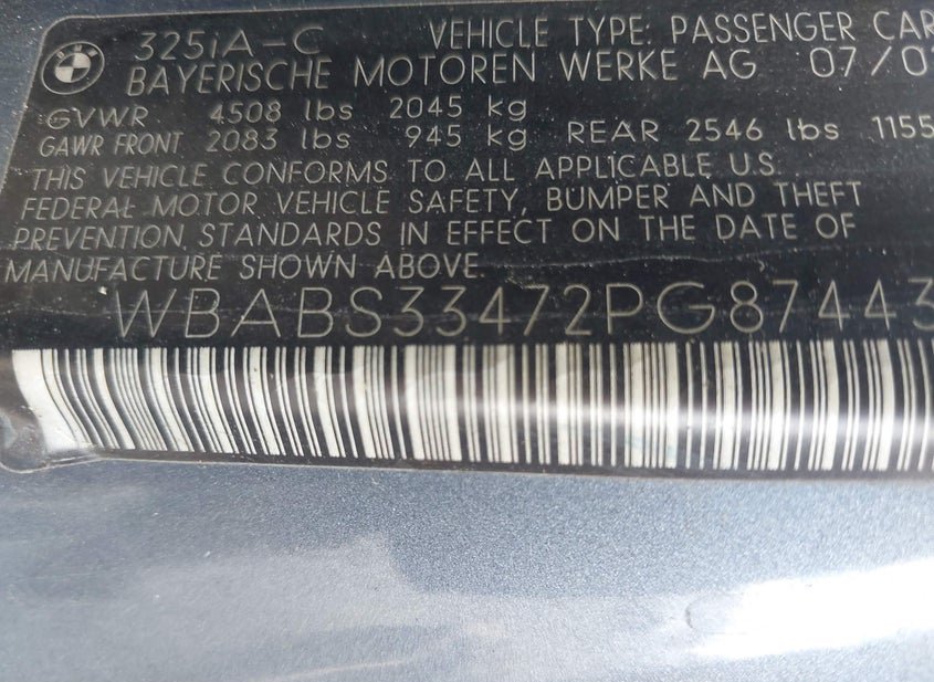 - VIN: WBABS33472PG87443