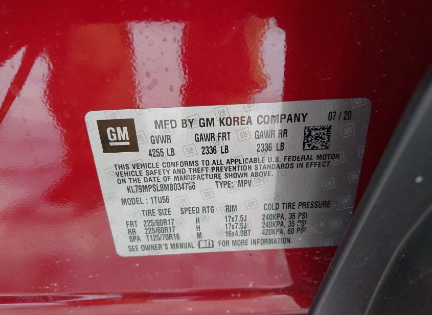 - VIN: KL79MPSL8MB034786