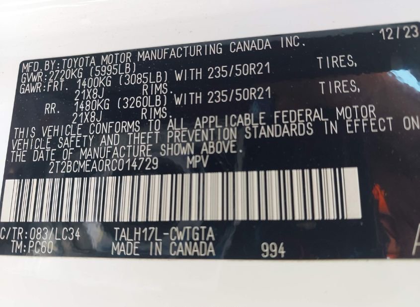 - VIN: 2T2BCMEA0RC014729