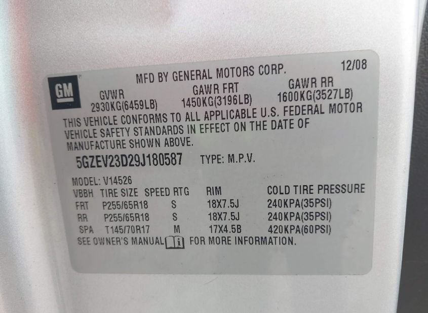 - VIN: 5GZEV23D29J180587