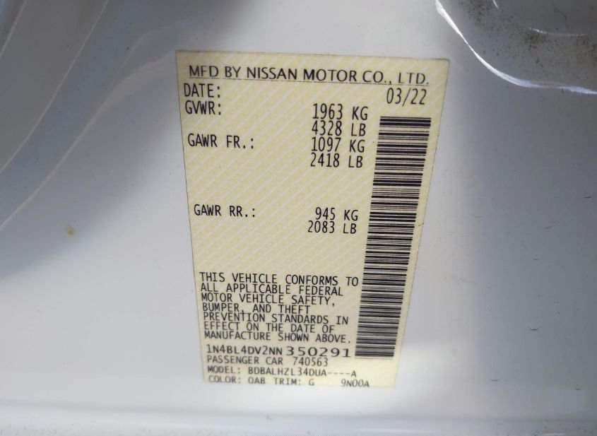 - VIN: 1N4BL4DV2NN350291