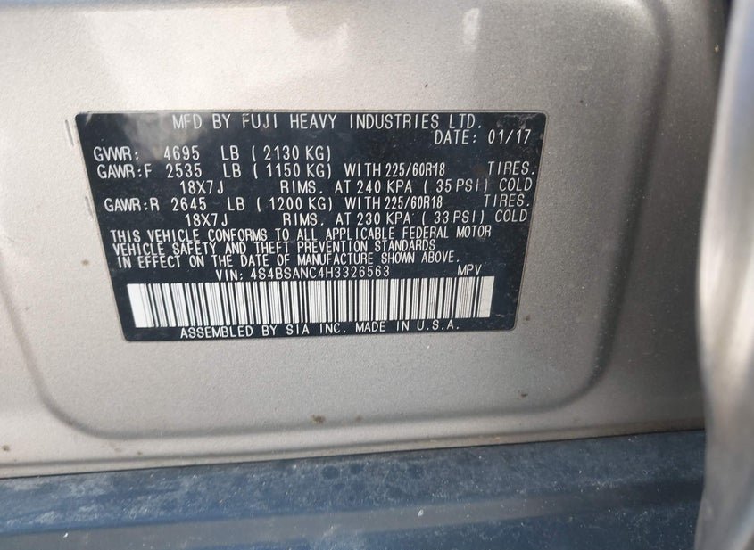 - VIN: 4S4BSANC4H3326563