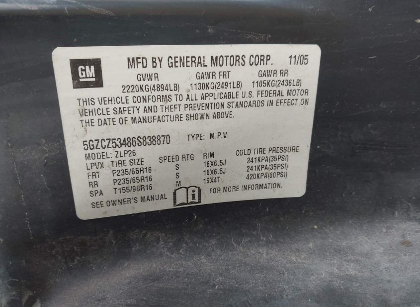 - VIN: 5GZCZ53486S838870