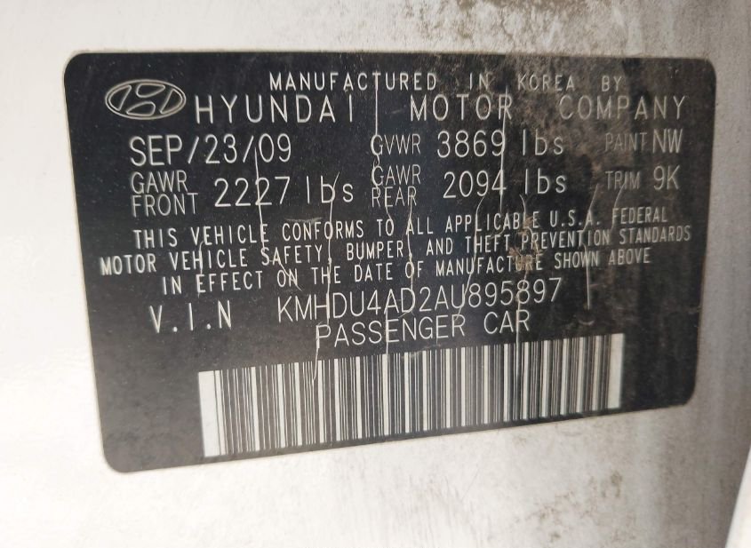 - VIN: KMHDU4AD2AU895897