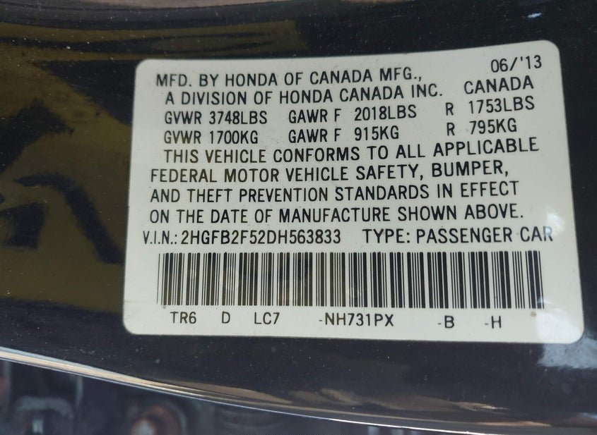 - VIN: 2HGFB2F52DH563833