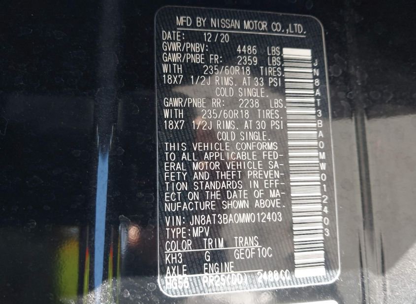 - Название лота: 2021 NISSAN ROGUE SV FWD