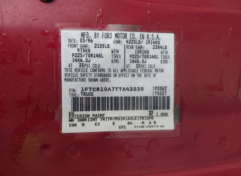 - VIN: 1FTCR10A7TTA43030