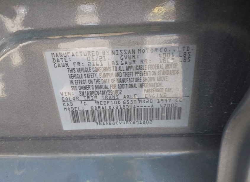 - VIN: 3N1AB8CV4MY291802