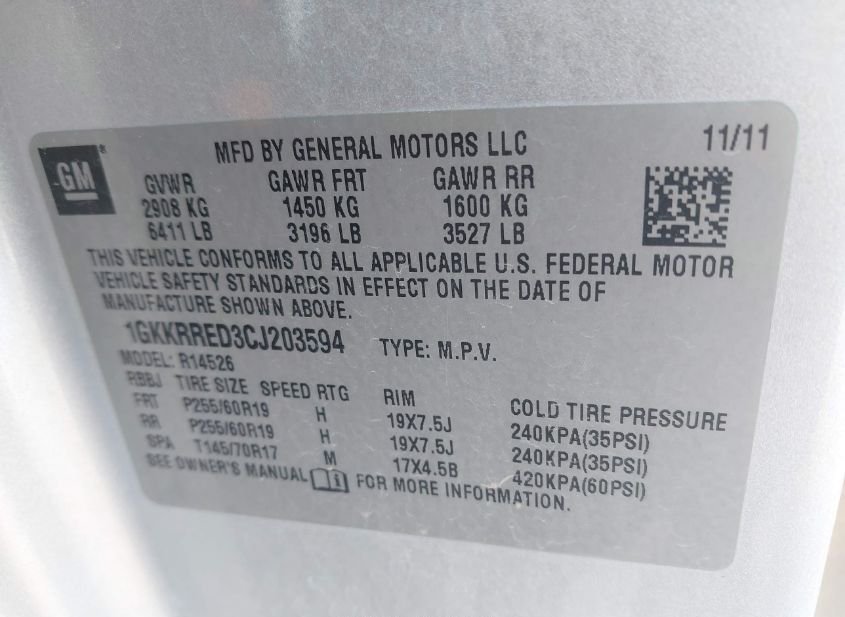 - VIN: 1GKKRRED3CJ203594
