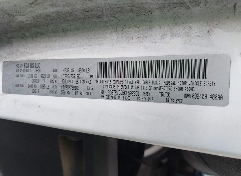 - VIN: 3C6TRVDG5KE502351