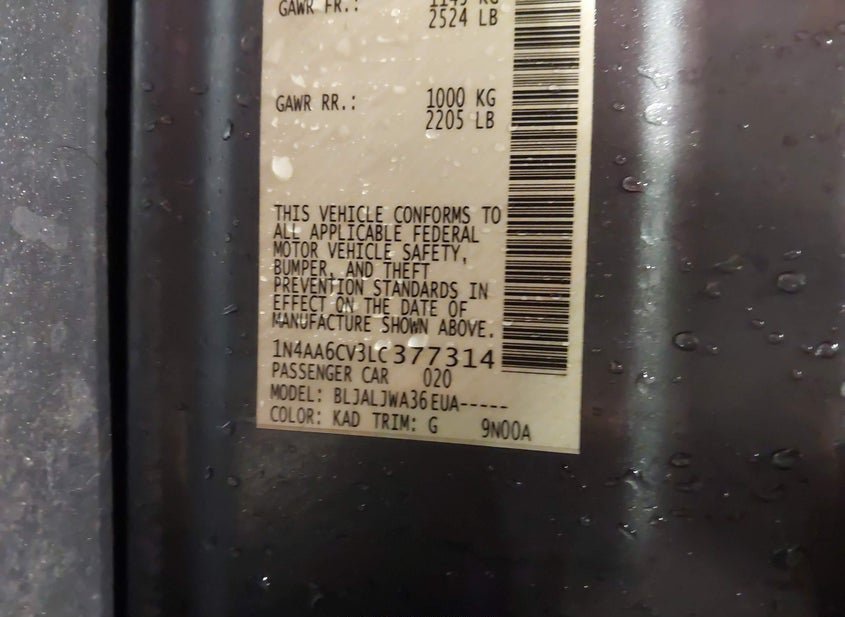- VIN: 1N4AA6CV3LC377314