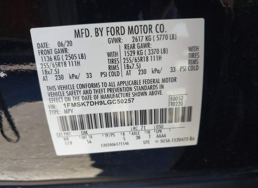 - VIN: 1FMSK7DH9LGC50257