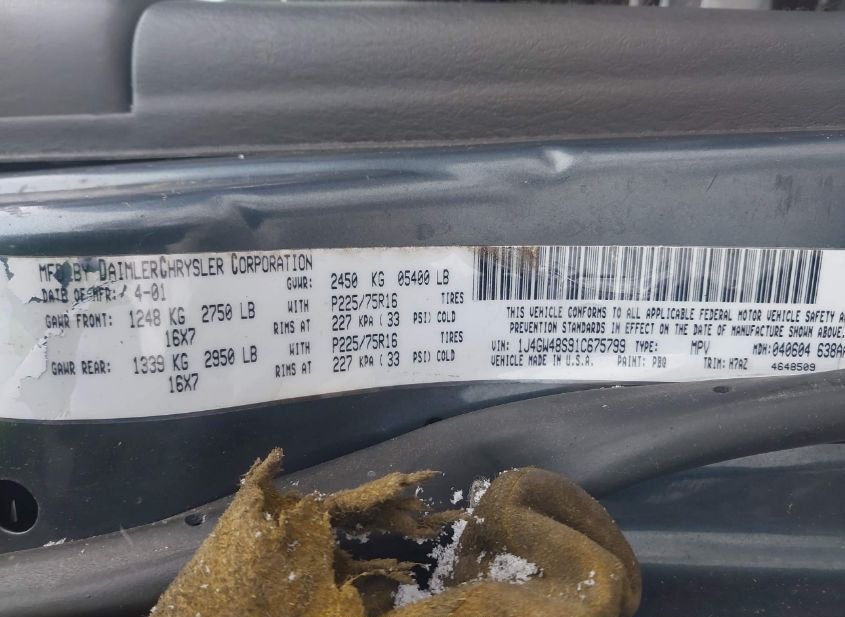 - Название лота: 2001 JEEP GRAND CHEROKEE LAREDO