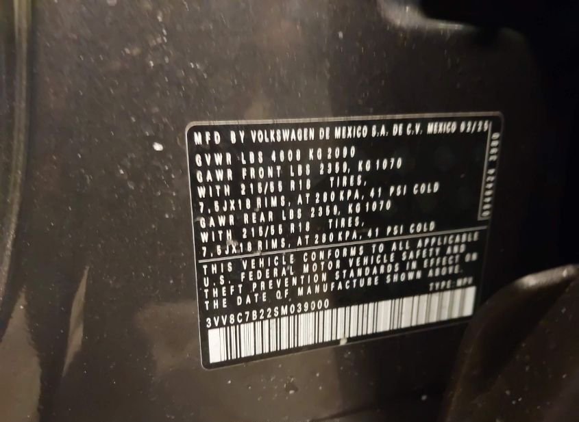 - VIN: 3VV8C7B22SM039000