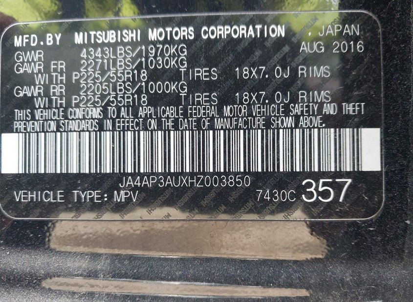 - VIN: JA4AP3AUXHZ003850