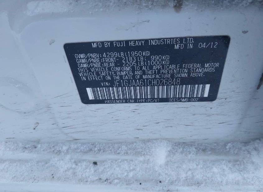- VIN: JF1GJAA61CH026848