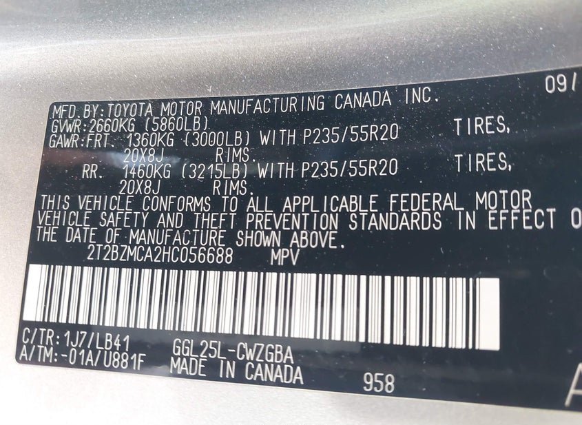 - VIN: 2T2BZMCA2HC056688