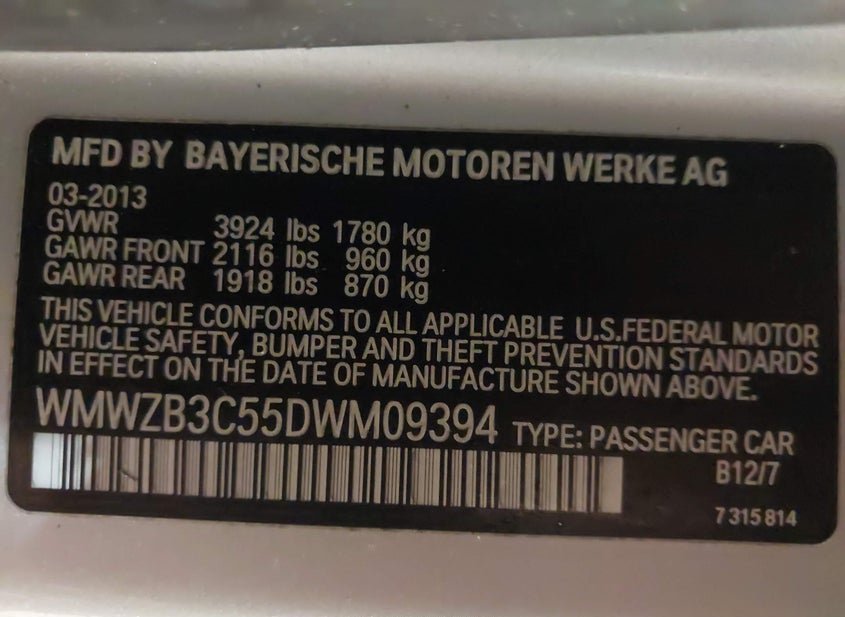 - VIN: WMWZB3C55DWM09394