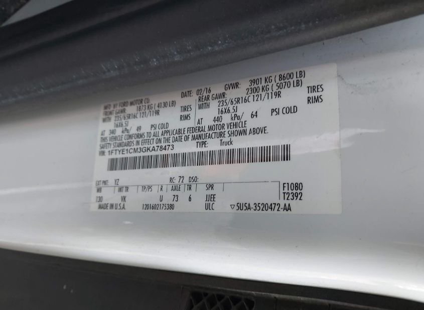 - VIN: 1FTYE1CM3GKA78473