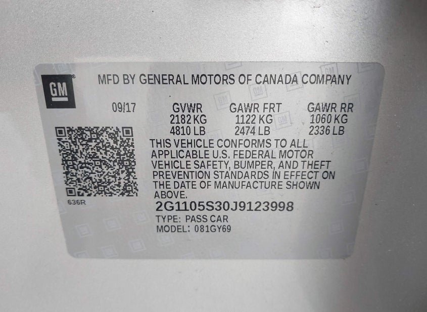 - VIN: 2G1105S30J9123998