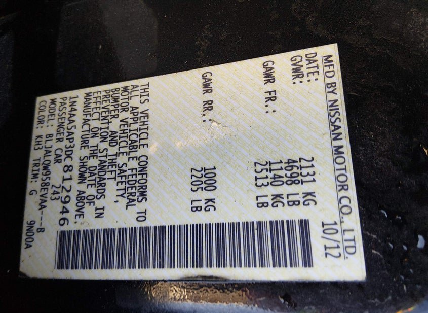 - VIN: 1N4AA5AP3DC812946