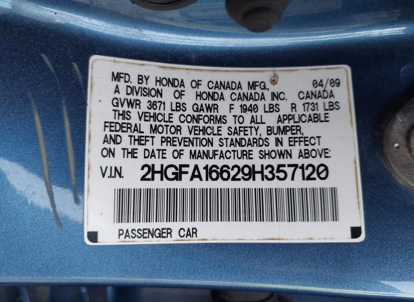 - VIN: 2HGFA16629H357120
