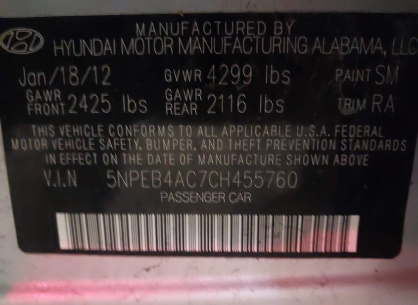 - VIN: 5NPEB4AC7CH455760