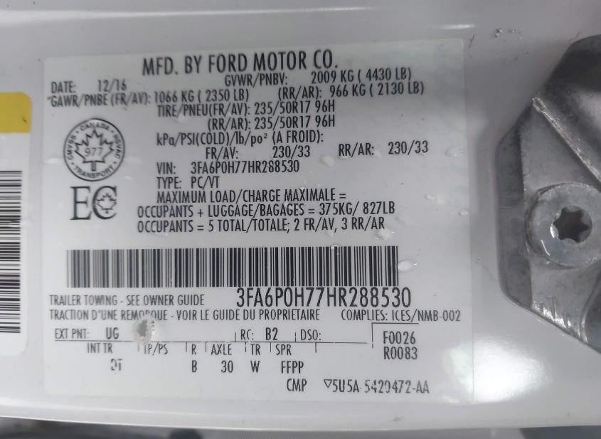 - VIN: 3FA6P0H77HR288530