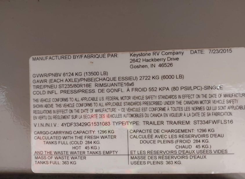 - VIN: 4YDF33429G1531083