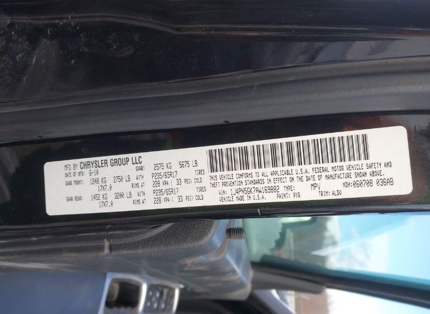 - VIN: 1J4PN5GK7AW169882