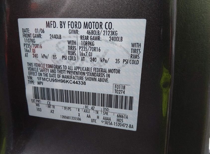- VIN: 1FMCU95H96KC44338